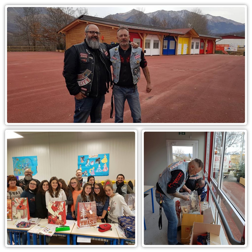 Da Savona, il gruppo degli Hells Angels, ha deciso di partire con un pulmino pieno di regali per i tanti bambini, oltre 200, colpiti dal sisma nel centro Italia. Il comune di Amatrice li ha accolti pieno di entusiasmo anche se, purtroppo, come spiega Fabio “Ciak” degli HA, non è stato facile raggiungere la scuola causa del percorso poco idoneo: “è stato quasi come scalare una montagna”.